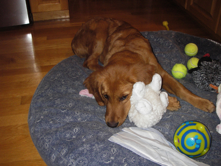 Taken on the day he arrived and a couple weeks later with his paw in the dish, this is Waldo 2007-2019 our super vigilant Schroth Fiberglass watch dog. No robberies since he arrived May of 2007. Click on either photo to see the shots we took on his arrival day.