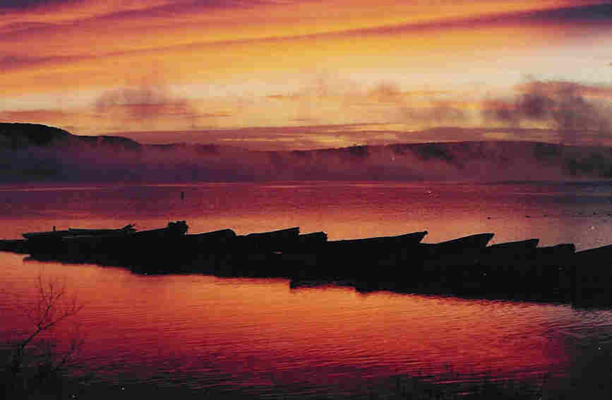 From the point and looking toward the main sailing basin. The sun is behind the hill to the left of the frame. |