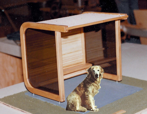 Yes, Photoshop was used here and Skipper really needed a bath. This is Jim Merritt's prototype of the 100 passenger shelters he eventually built for Capital Metro