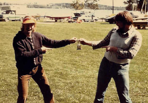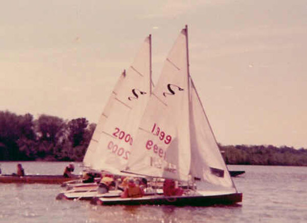 In 1976 Rich La Fountain and I had just done really well in a Whip regatta. We probably called it the Championship of the Universe since there really was no Whip fleet. The Whip was a hull with a bow like a Thistle and a hull underbody like a short Flying Dutchman. The thing had 235 square feet of sail and Rich weighed in somewhere around 235. He stood on the trapeze and we were totally dominant whenever the wind blew.