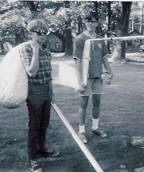 On this day in 1967 I took Craig Hatch for a ride on a Pintail. We somehow carried all the pictured stuff eight miles to the lake....on our bicycles. The highlight of Craig's day was probably when Mr Know It All, who insisted he knew exactly what he was doing, ( But Fred that sail sure looks wierd to me) hauled the jib all the way to the top of the forestay upside down.