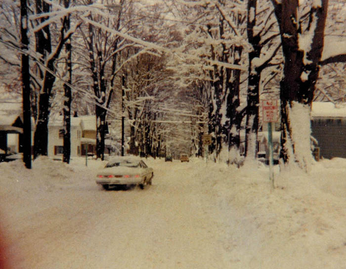 Notice how the ice hangs down about eight feet from the roof. The brick building in the background is the160 year old Presbyterian church . It burned down sometime before 1979