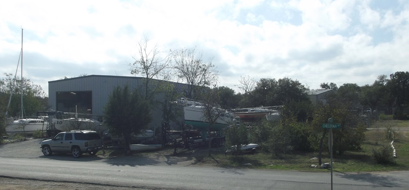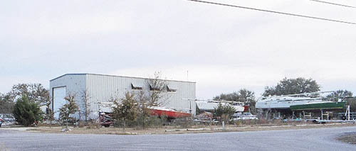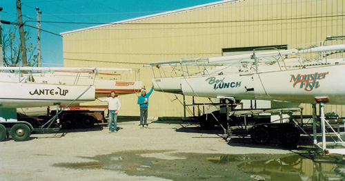 Outside our old Burleson Road shop in 1988 with Bryan Tatum, Fred, and lots of J-24s