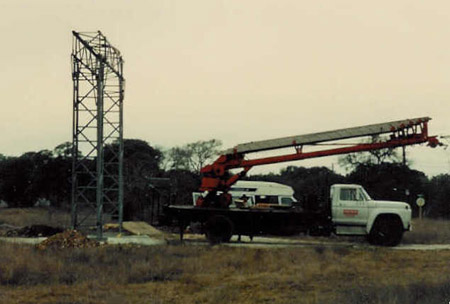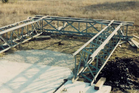 The photo above is the beginning of our first hoist. It was taken while the concrete was still wet. In all the photos, you may notice the early lack of trees and how we have tried to help lots of trees grow since we began to manage the land.