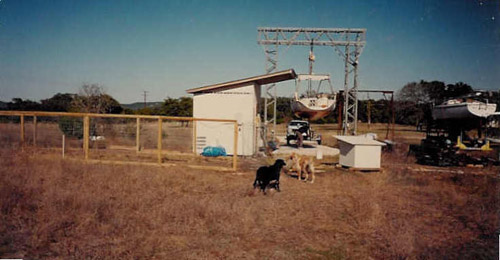 This Ranger Fun 23 was one of the last boats hung in the outdoor hoist before construction began on our new metal building. Our black lab Wabash was over 15 years old. Skipper had just had his second birthday.